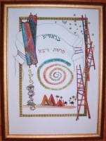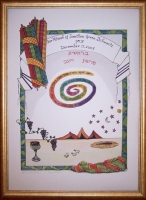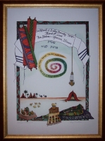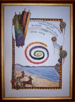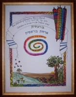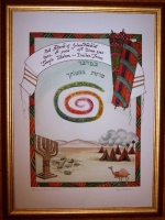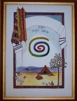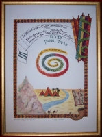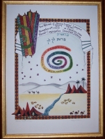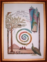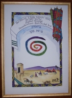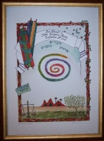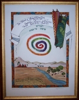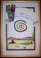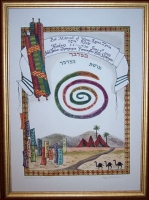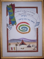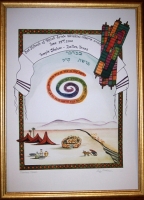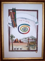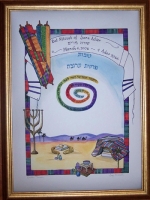 Below is our new illustrated series representing each of the weekly torah portions. Each giclee print is 16 1/2 by 22 inches framed and personalized with the name (in Hebrew and English) of the bar or bat mitzvah, the date and place of the ceremony. This gift makes a beautiful and meaningful commemoration of a special event.